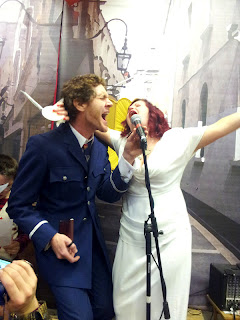 The delicious meal was provided by neighbours of Dirty Fabulous, Cornucopia and included tasty morsels such as Beetroot, blue cheese and brazil nut cheese cake and Ragout of chickpea, roast pepper, garlic and white wine. As this was not your average wedding the vegetarian buffet ended with a 'Cheese Course' which involved the children invited to the wedding being dressed in mice costumes and handing out song lyrics for 'cheesy' love songs...hilarious is too small an adjective to describe the audience participation in the cheese course!!!