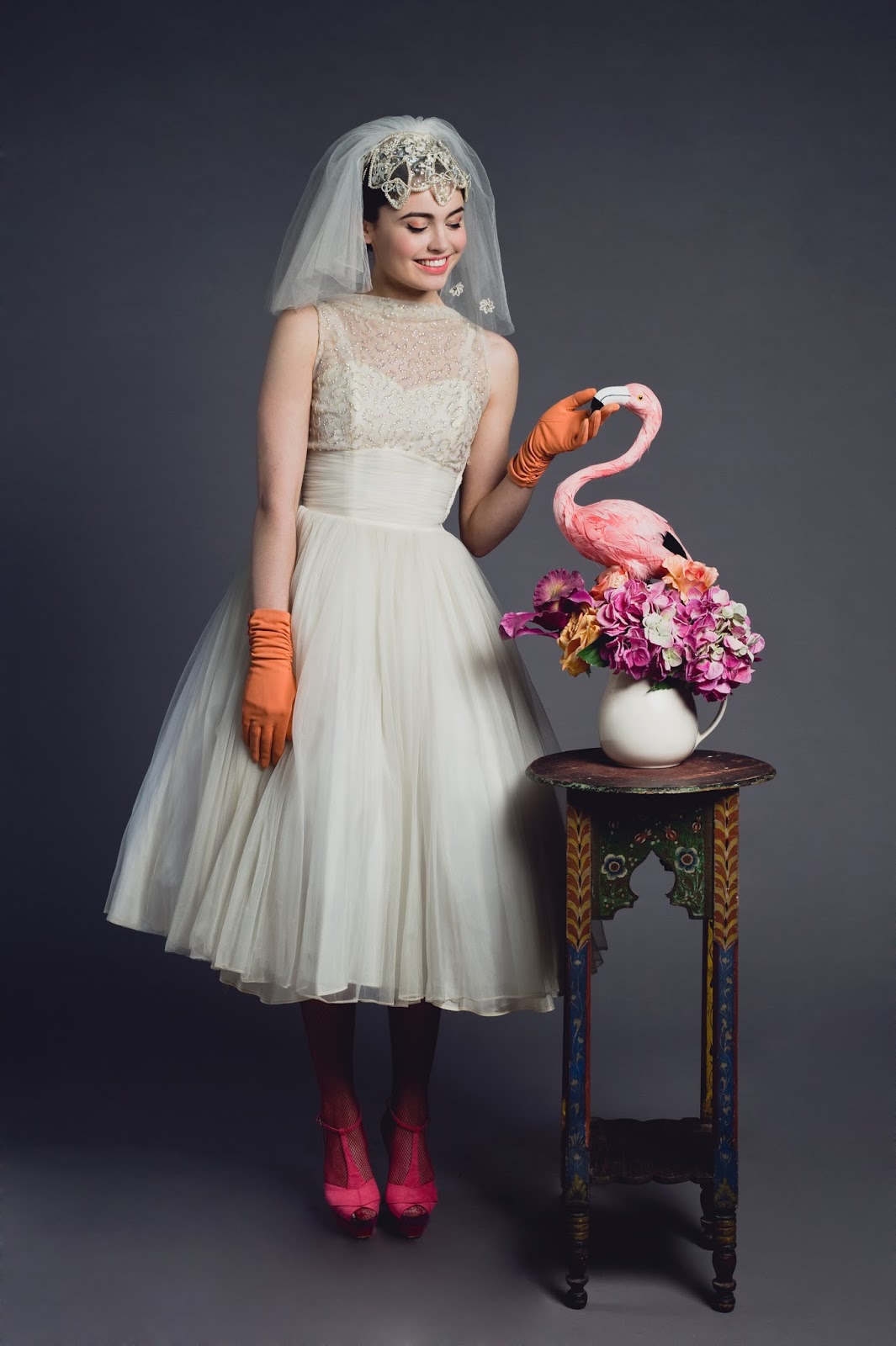 Here's the complete set of images of tea length and short vintage wedding dresses that featured. Here at Dirty Fabulous we love keep things quirky, fun and totally unique to each special bride and we wanted our shoot to portray this. Choosing a vintage wedding dress allows you to have a completely unique dress that will reflect your own personal style and individuality.